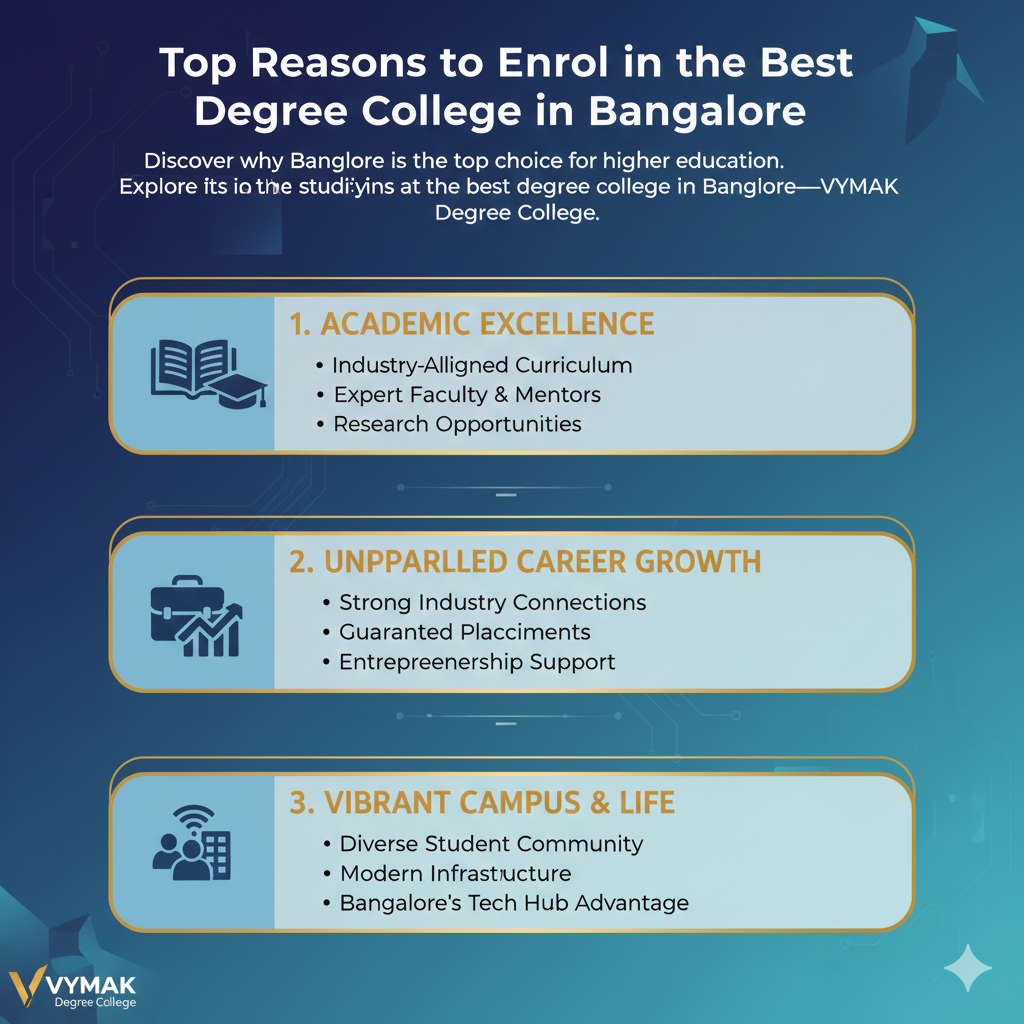 Below are the top reasons why enrolling in a degree college in Bangalore—especially VYMAK Degree College—can transform your academic and career journey.